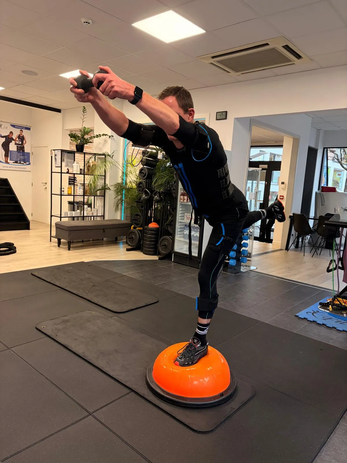 Door elektrische spierstimulatie werken meerdere spiergroepen tegelijk, zonder zware belasting van gewrichten.